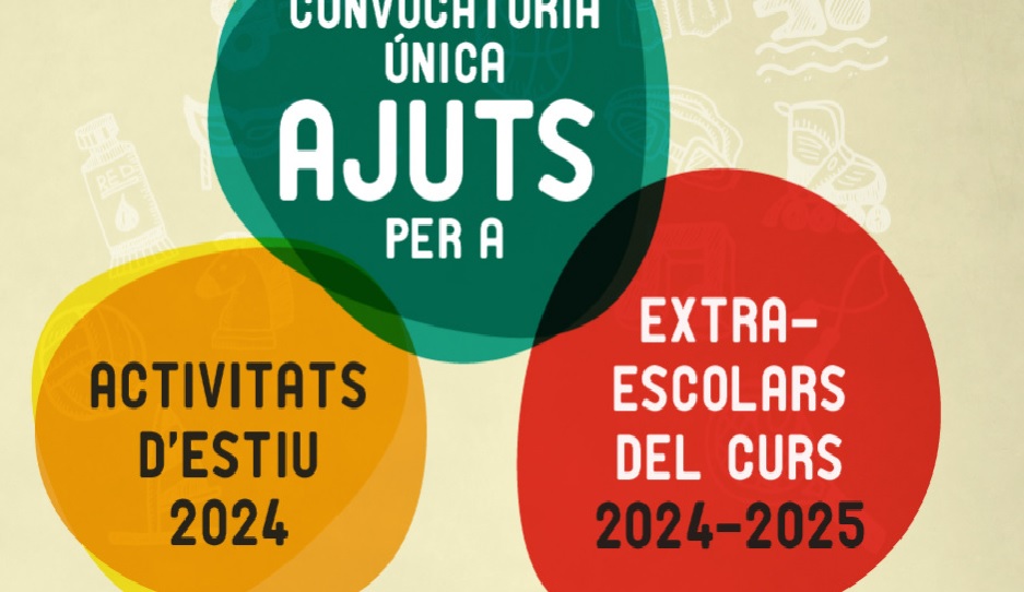 Us informem que es poden demanar els ajuts d’activitats d’estiu 24 i les extraescolars del proper curs escolar 24-25 a partir del dia 15 de març fins el dia 12 d’abril.